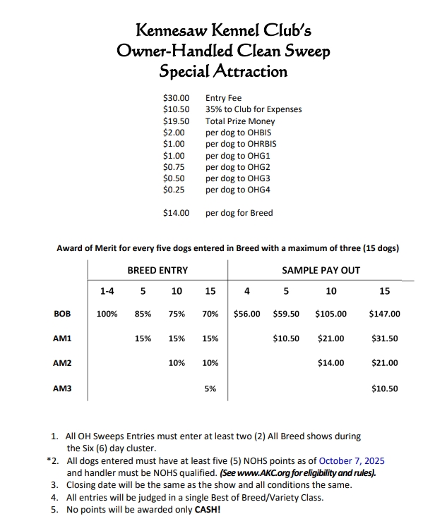 • All entrants must also compete in at least two (2) All-Breed shows during the six-day cluster.